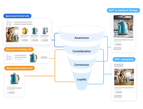 認知から購入まで、戦略的なAmazon広告設計でファネル全体をカバー。