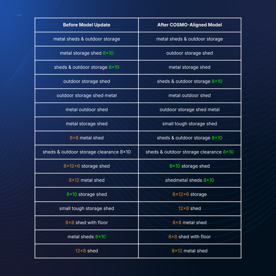 Before AI: "8x8 outdoor shed" (incorrect match for a 10x8 shed).